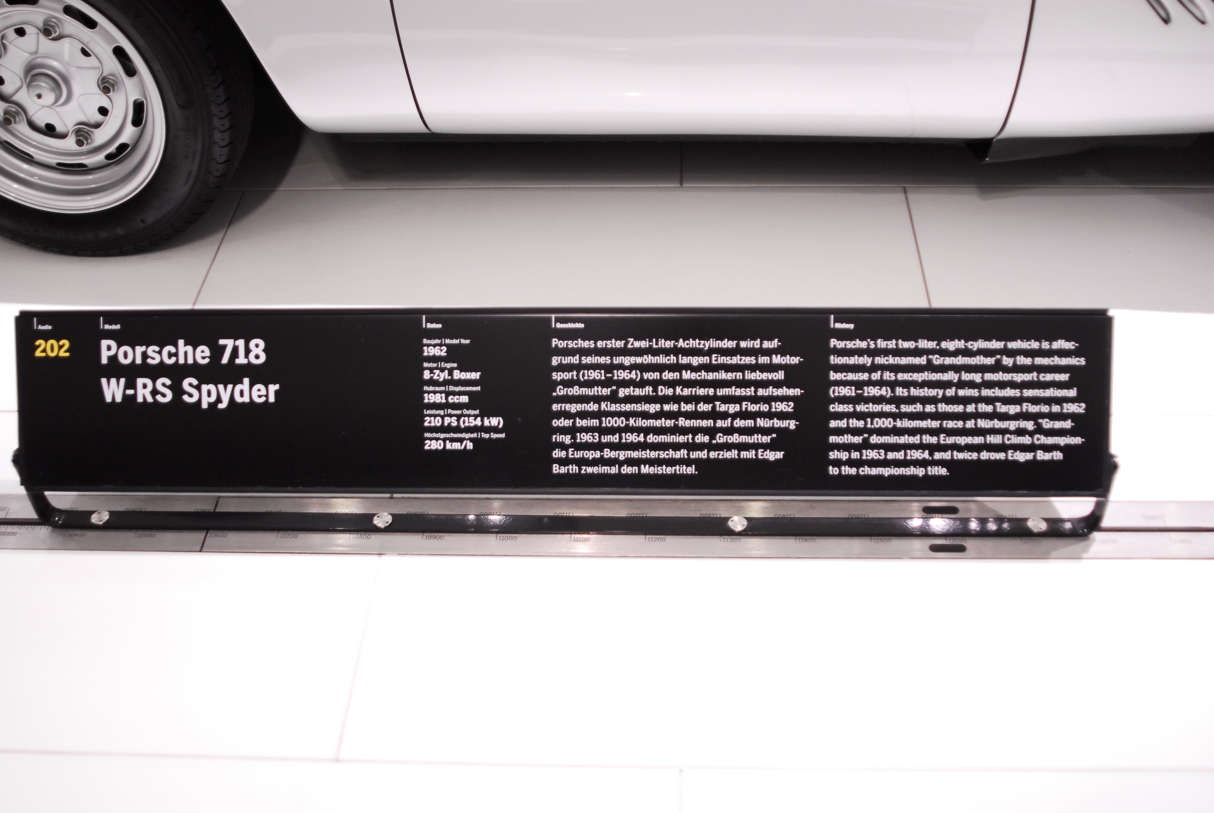 W-RS: The W stands for "Weltmeisterschaft". The Grossmutter competed in the World Manufactures' Championship. The other 718 competed in the European GT championship races