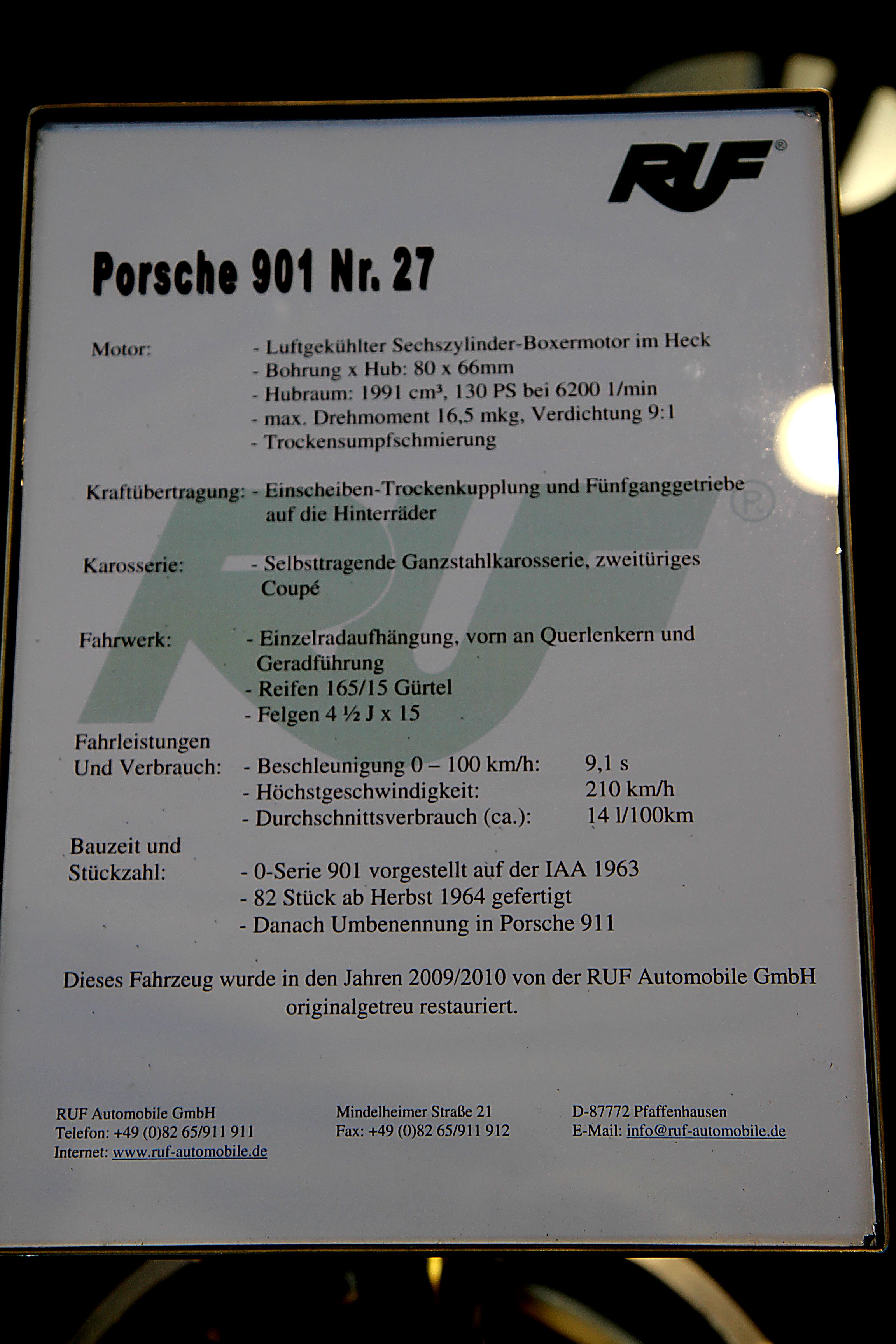 Porsche 901 (No. 27), the Car was restored by RUF Automobile GmbH in Germany between 2009 and 2010