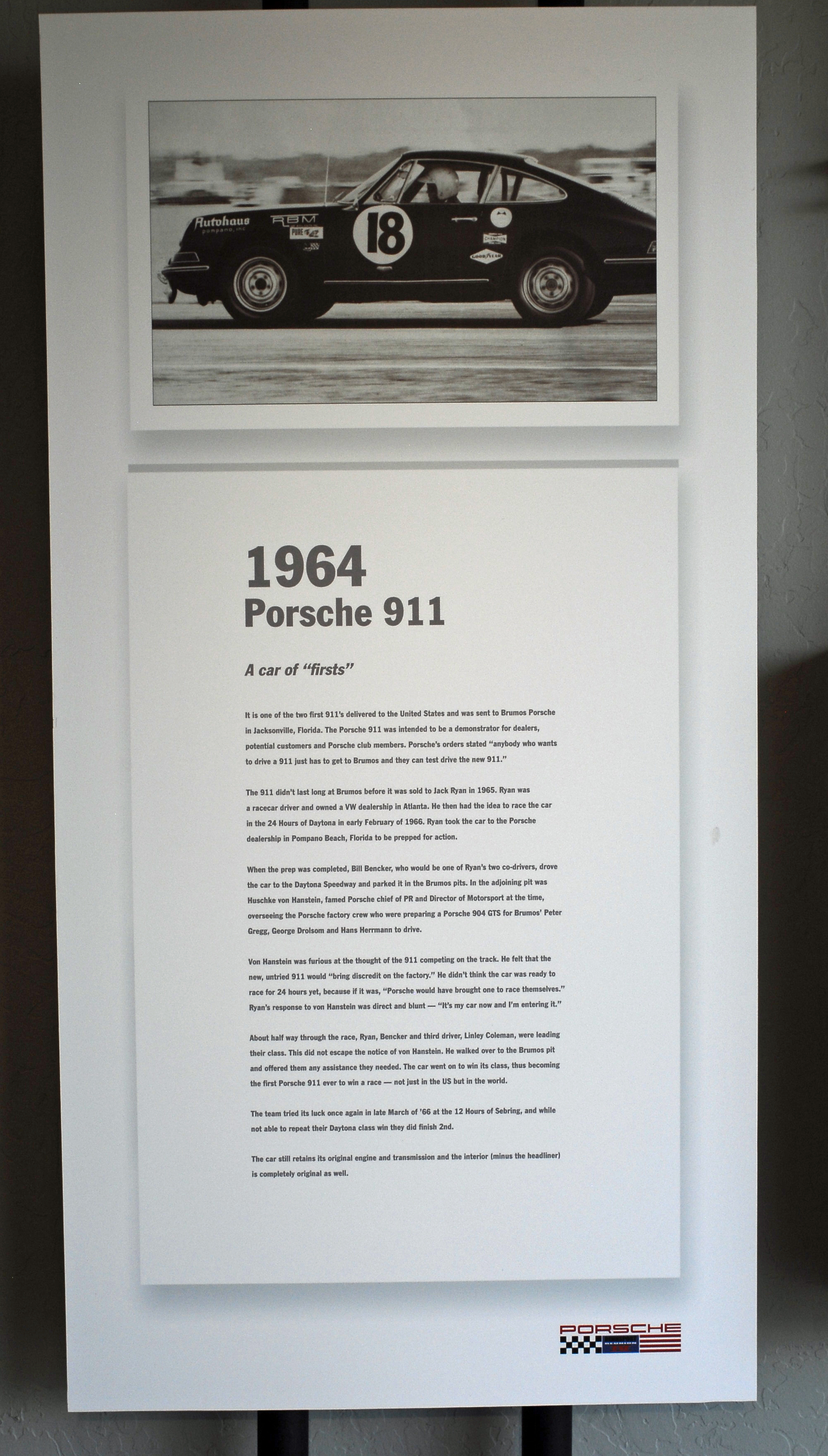 1964 911 Porsche sn-3000128, is 1966 Daytona winner. First GT Class win for a 911 and the first of 76 GT Class wins as of 2015.