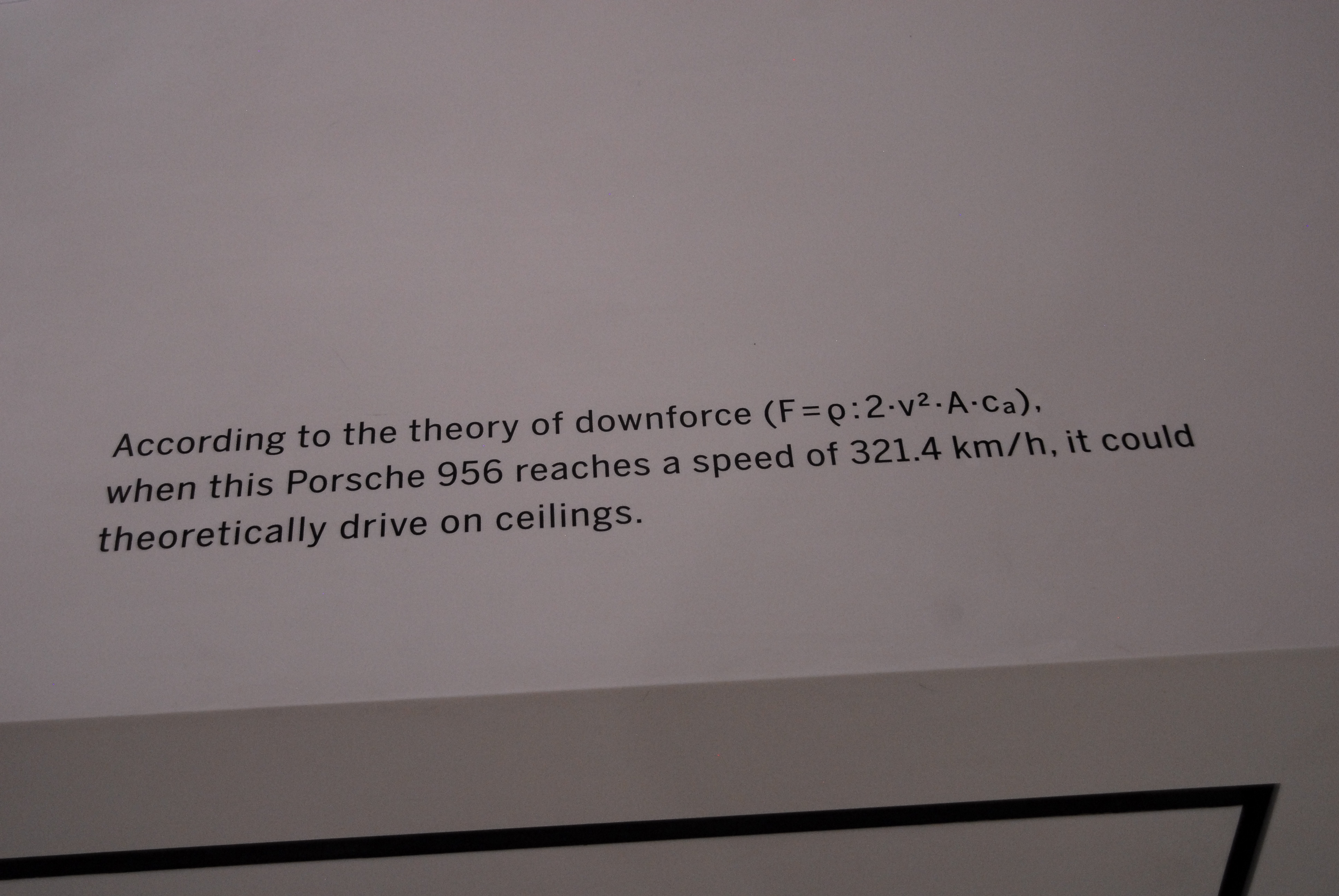 Mathematics predicts that this 956 could defy gravity when traveling at 321.4 km/h. That is, the car could be pushed onto the ceiling due to its aero features