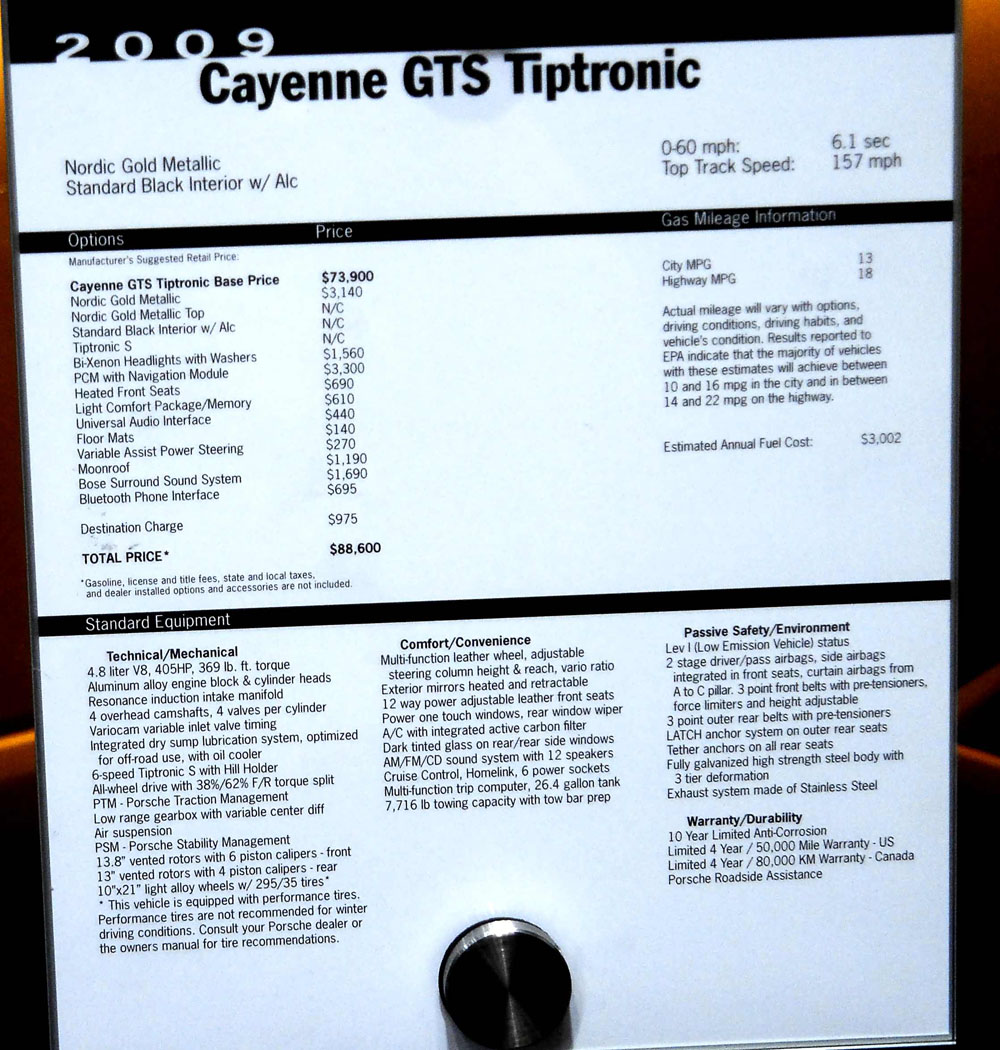 Porsche Cayenne GTS sn-WP1AD29P99LA61863 2009